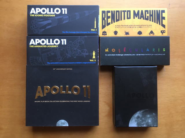 These are also from Kickstarter campaign from the small company. Each flipbook shows six scenes. The item at the lower right is a set of picture card of the Apollo 11 Anniversary.
