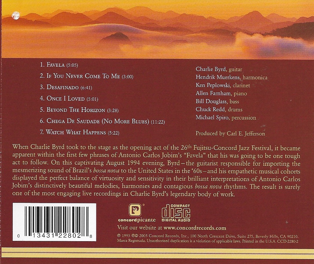 My next selection is Charlie Byrd Homage to Jobim. Another welcomed addition to my CD collection by an another jazz guitar great. The pairing of Byrd and the music of Antonio Carlos Jobim is pure heaven.